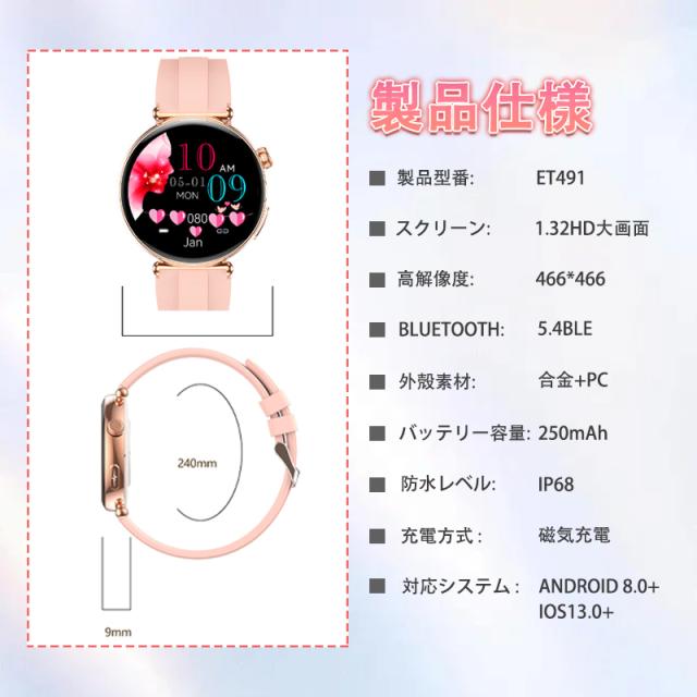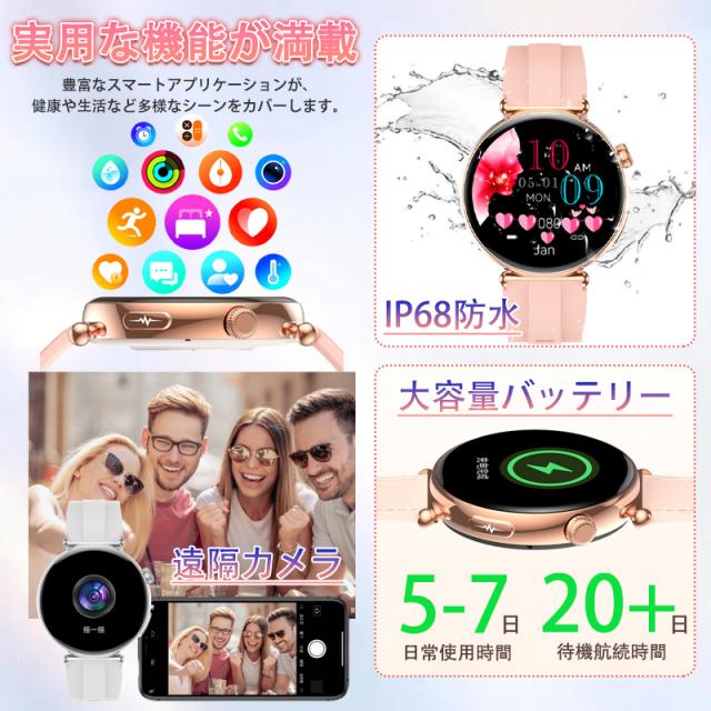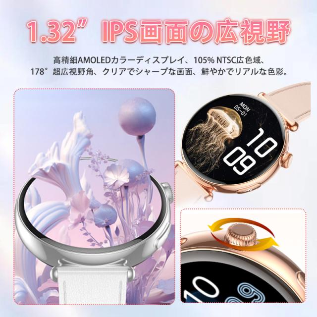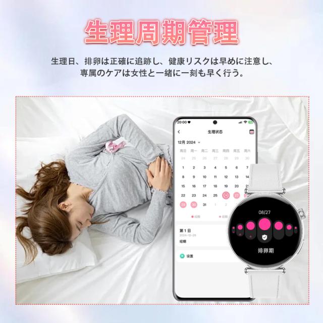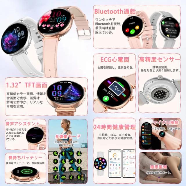 2025最新 スマートウォッチ 女性向け 女性の健康 血圧 血糖測定 血中酸素 ECG心電図 BMI体組成 月経周期トラッキング 多機能測定測定 Bluetooth5.4通話可能 24時間体温 睡眠監視 心拍数 天気予報 心拍計 健康管理 防水 IP68 1.32インチ大画面 着信 LINE 通知 iPhone Android 対応 プレゼント 母の日 敬老の日 誕生日 夏祭り ギフト