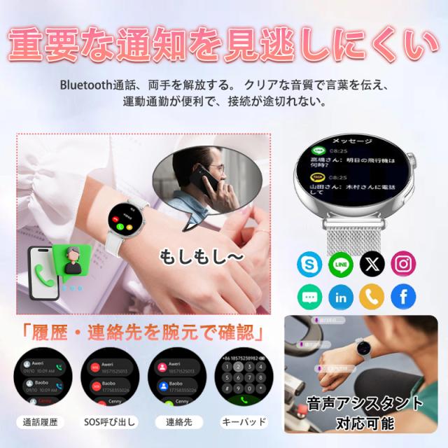 【豊かな機能&日常生活サポート】スマートウォッチには女性の健康、皮膚温、体組成、血中酸素、心拍数、睡眠、音楽制御、電卓、メッセージ通知、天気予報、カメラ制御、アラーム、腕上げ点灯、スマホ探し、ストップウォッチなど充実の機能を搭載して、日常生活をより便利にします。オフィス仕事や在宅勤務など必要な座りがち注意、水飲み通知機能付きます。また、専用APPと同期させると、詳しいデータが日別に確認できます。母の日、敬老の日、クリスマス、誕生日などに一番適用するプレゼントです。