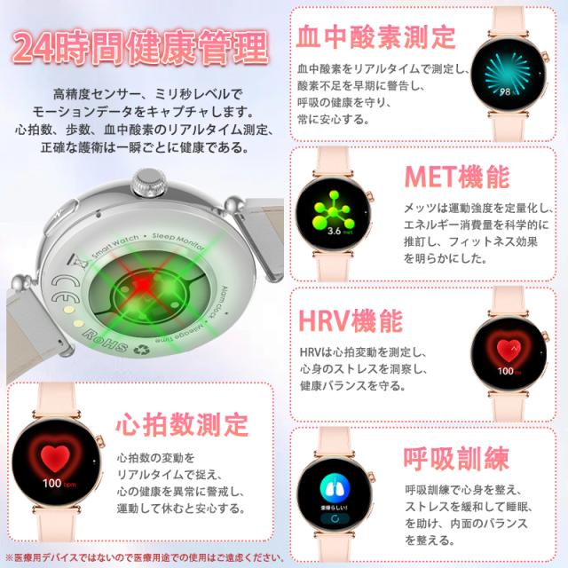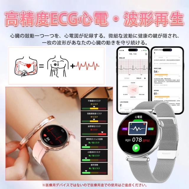 即日発送 スマートウォッチ レディース 血圧 血糖測定 血中酸素 ECG心電図 BMI体組成 月経周期トラッキング 睡眠管理 SOS緊急連絡 iPhone Android対応 着信通知 通話機能付き 活動量計 歩数計 カロリー消費 走行距離 腕上げ点灯 日本語取扱説明書 腕時計 母の日 プレゼント