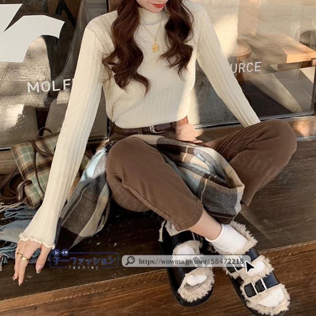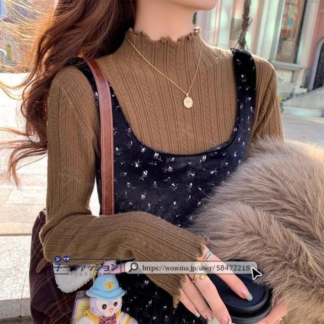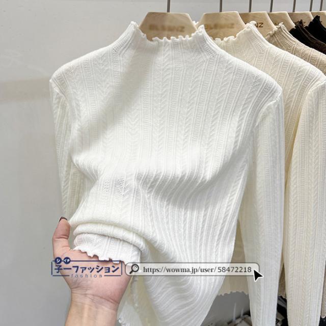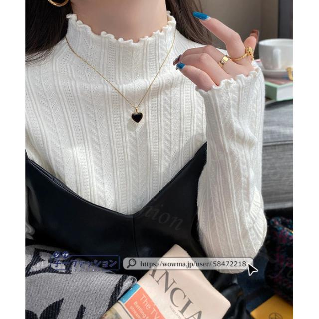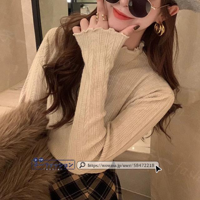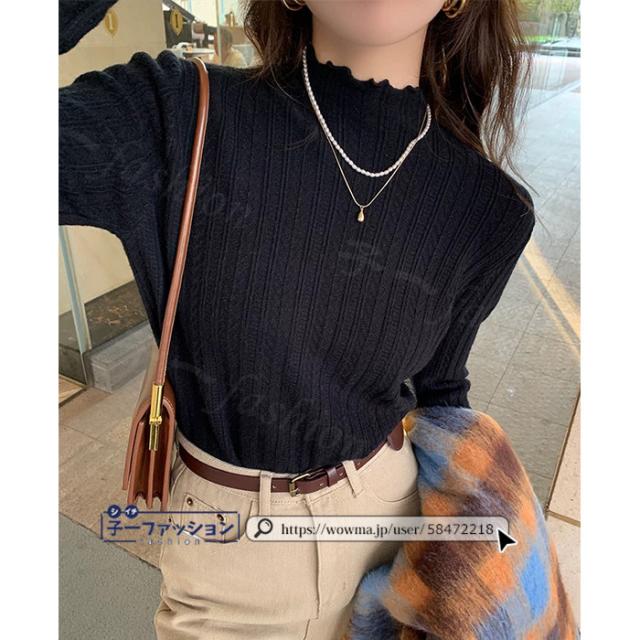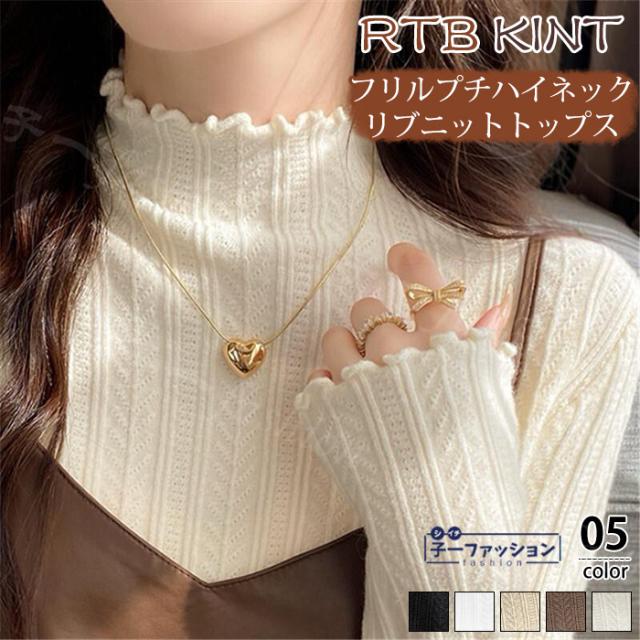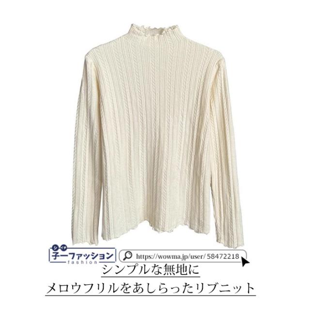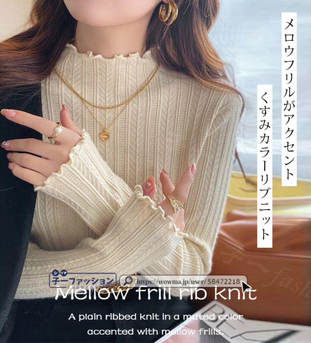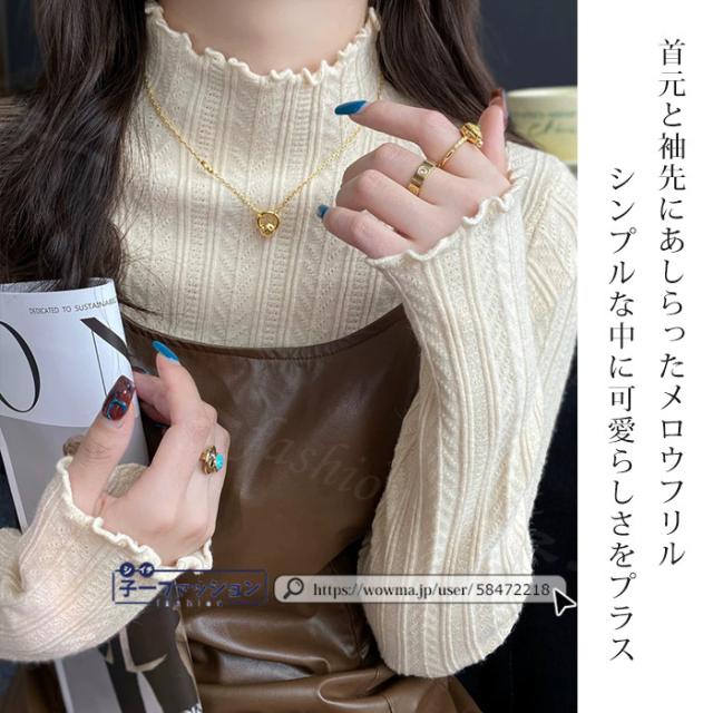 <1点あたり1,350円!2点同時購入&クーポン利用で>ニット メロウ フリル ハイネック リブニット レディース 冬新作 新作 フリルプチハイネック セーター 長袖 重ね着 きれいめ オフィス 無地 着回し 着痩せ プルオーバー インナー チクチクしない 秋服 冬 秋冬
