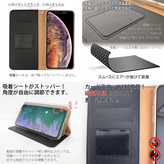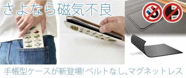 | スリムボディ | 吸着シートで手帳が開閉できるようになったので、ベルトなしで制作することが可能になりました。ベルトがないと、バッグやポケットからの取り出しもスムーズになるばかりか、動画の閲覧やチャット時に、ベルトが液晶画面に掛からないため、画面が見やすくなります。 |