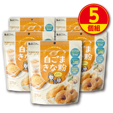 味源 白ごまきな粉 270g 新登場 5個組 栄養機能食品 チャック袋仕様 保存料・香料・着色料不使用 セサミン たんぱく質 カルシウム 鉄分 シールド乳酸菌100億個配合 フラクトオリゴ糖配合 植物性プロテイン ゴマ 胡麻 きなこ タンパク質 健康 食品 あじげん