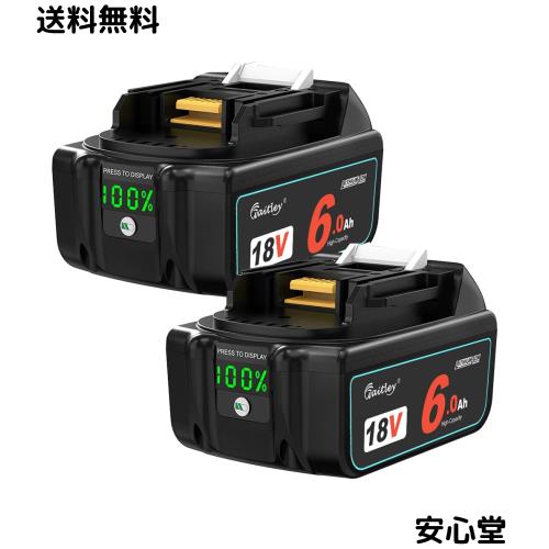 【互換品】waitleyマキタ BL1860 6.0Ah互換 バッテリー 2個セット全保護基板カットオフ機能付きデジタル%残量指示付き 容量6000mAh BL1
