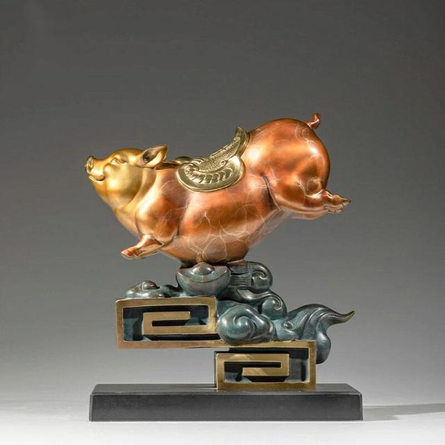 彩銅仕上げ 祥雲 猪 置物 銅工芸品 干支飾り 玄関 リビング 酒棚 インテリア 装飾品 家庭運 招福 彩色銅製 オブジェ クリスマス 御歳暮 お歳暮 御年賀 敬老の日 誕生日 結婚祝 出産祝 長寿祝 退職祝 昇進祝 新築祝 卒業祝 開業祝