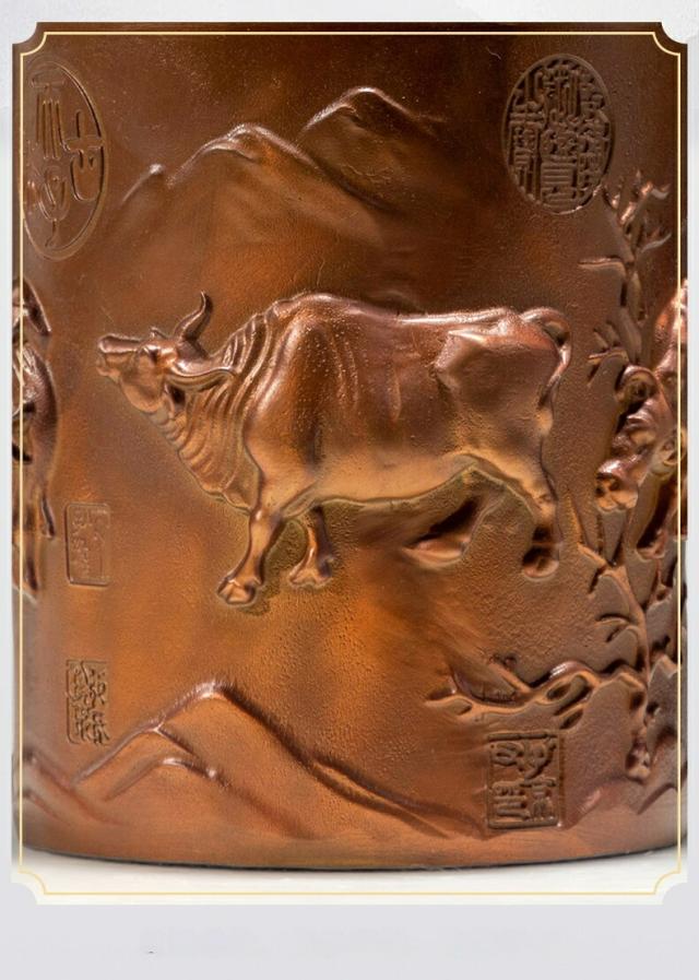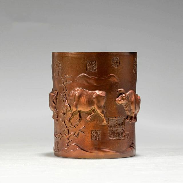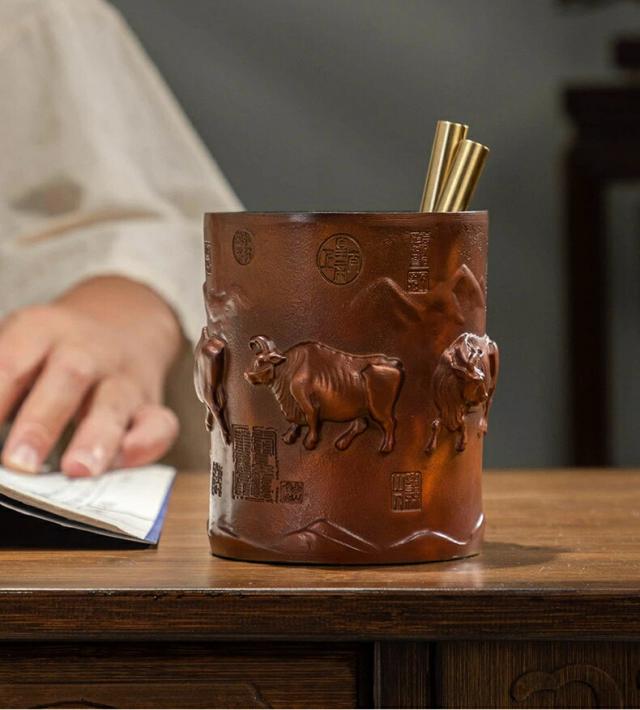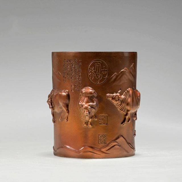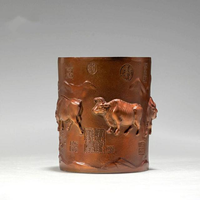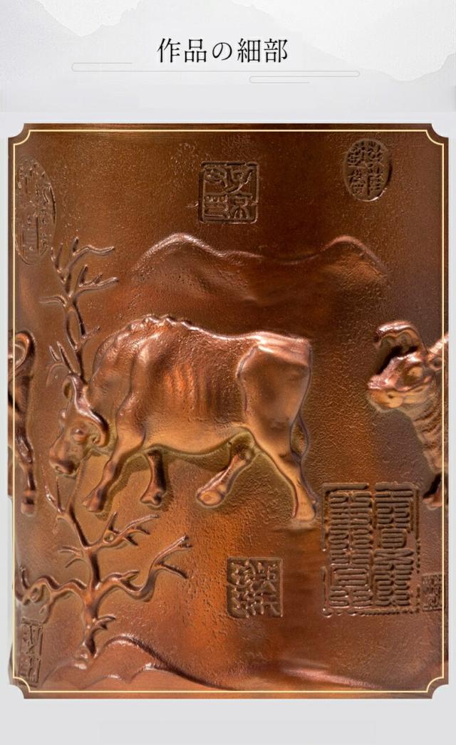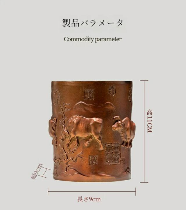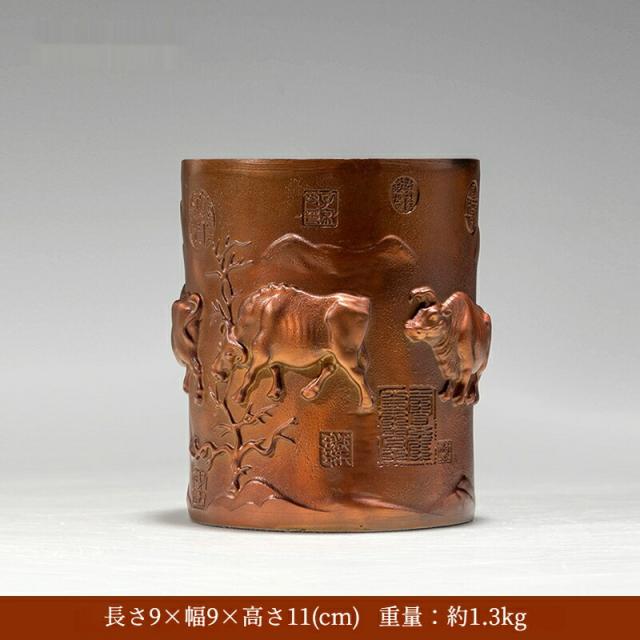五福牛 ペン立て 黄銅 置物 牛 彫刻 工芸品 書斎 オフィス デスク 飾り 開運 勉学 成功 商売繁盛 縁起物 ギフト 贈り物 同僚 友人 卒業祝い クリスマス 御歳暮 お歳暮 御年賀 敬老の日 誕生日 結婚祝 出産祝 長寿祝 退職祝 昇進祝 新築祝 卒業祝 開業祝
