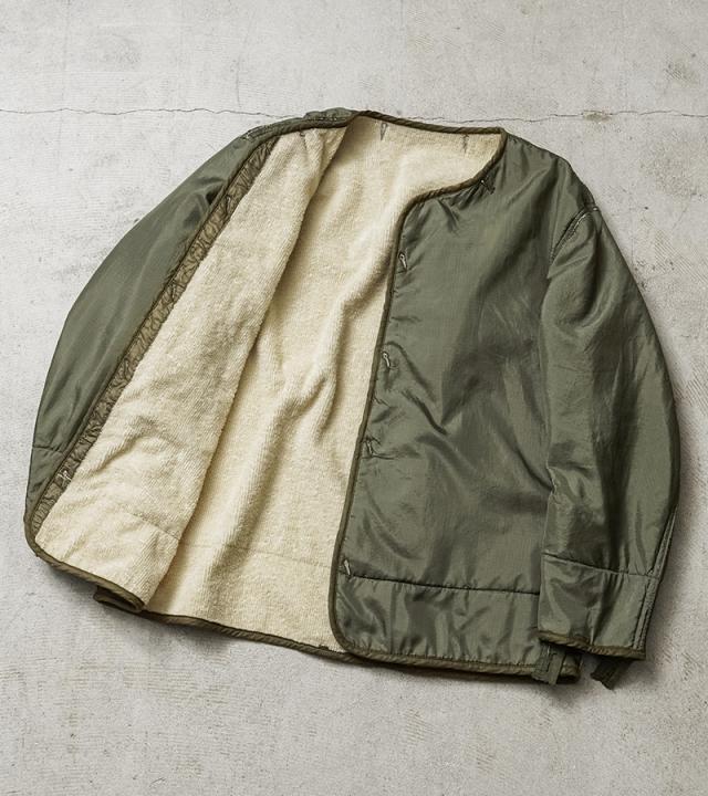 米軍で1951年に採用されたM-51ジャケット用ライナーのパイル地に織られた仕様を発見できました。現在では入手困難となってしまったM-51ジャケットですが、そのジャケット本体と同様に現存数が少ないのがライナーなんです!近年はライナーとしてではなく、アウターとして着用する事が主流になっていますが、その中でも希少且つ、おしゃれな一枚ではないでしょうか。