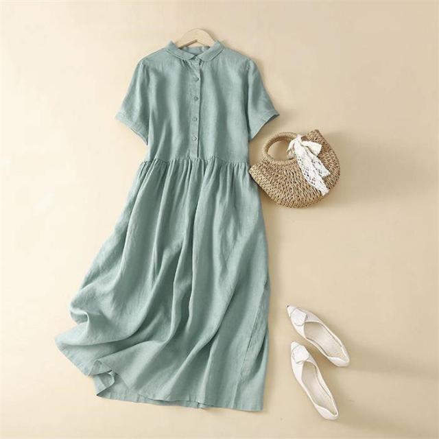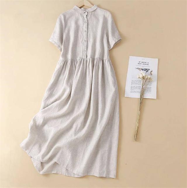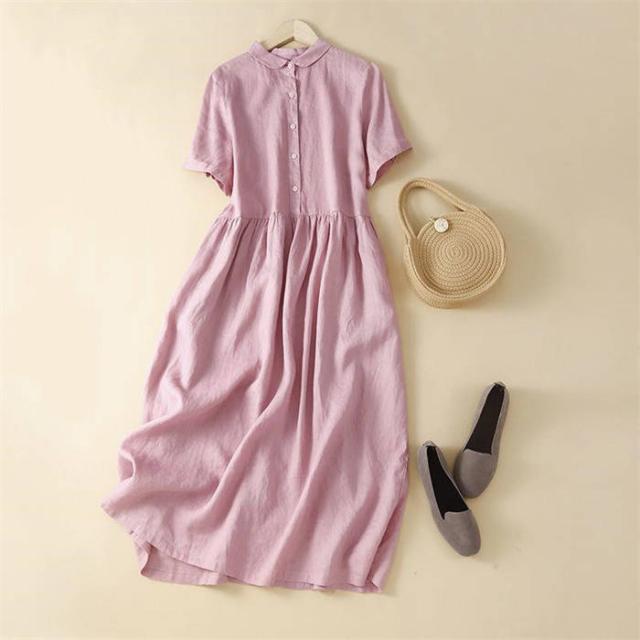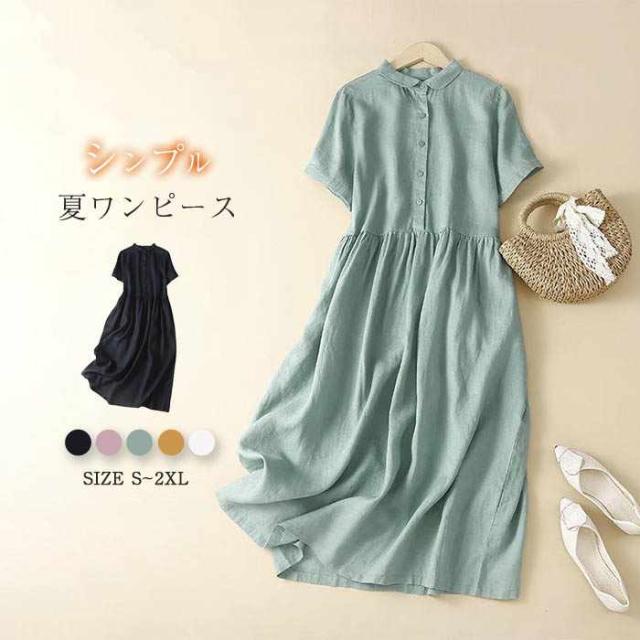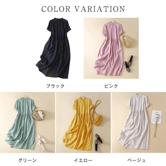 ワンピース 春夏 ゆったり レディース 綿麻ワンピース ロングワンピース 夏ワンピース 無地ワンピース ギャザー 外出 日常 ディリー 普段着 軽い 生地感 Aライン 風合い 30代 40代 50代