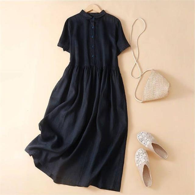 キーワード ワンピース 春夏 ロング レディース 綿麻風ワンピース ロングワンピース 夏ワンピース 無地ワンピース レディースワンピース ロング丈 5分袖 フレア 涼しい キャザー 丸襟 綿麻風 無地 春 夏 おしゃれ aライン 薄手 シンプル 森ガール オリジナル 定番 リネン 麻 キレイ 日常 ディリー 普段着 軽い 生地感 Aライン 風合い 30代 40代 50代