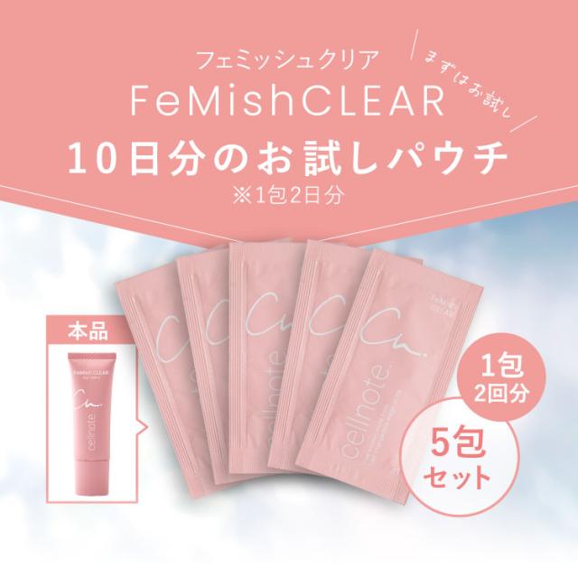cellnote. FeMish CLEAR フェミッシュクリア 5包セット 10日分 医薬部外品 デリケートゾーン用 薬用 お試しセット くすみケア クリーム 水溶性プラセンタ グリチルリチン酸 フェムケア VIO バストトップ 乳首 お尻 保湿 セルノート