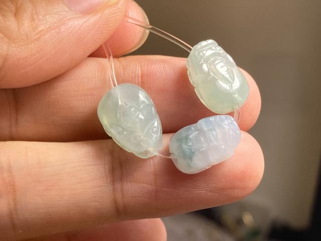 3点セット通穴 貔貅 本翡翠 ミャンマー産 A貨 財布貔貅 御守、一点物です