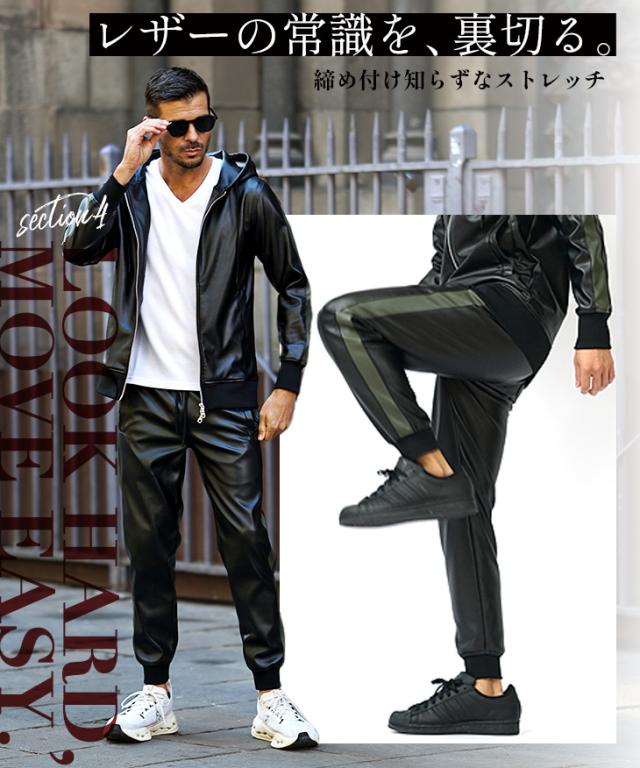 ジョガーパンツ メンズ 裏起毛 PUレザー パンツ ウエストゴム イージーパンツ おしゃれ シンセティックレザー ボトムス メンズ ブランドスリム 細身 ストレッチ メンズファッション ちょいワル オラオラ系 ジョーカー JOKER
