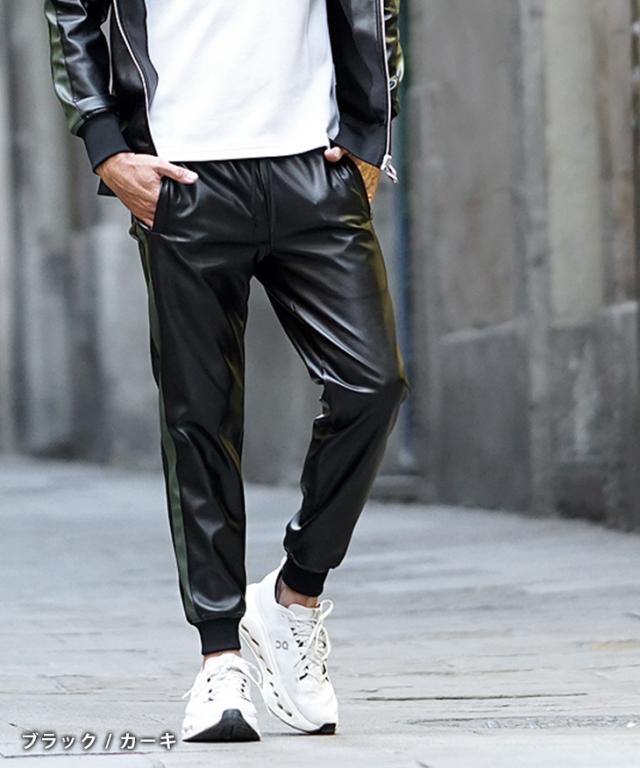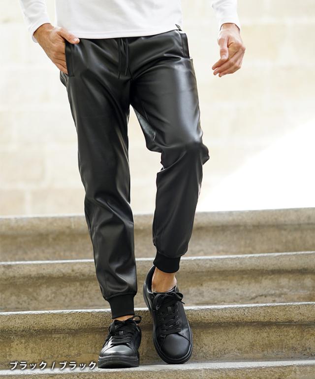 PUレザージョガーパンツ。