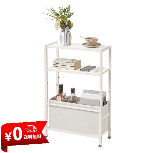 AIBIJU 狭い サイドテーブル サイドベッド テーブル 布製引き出し付き ラック オープンシェルフ スリム 棚高さ調節可能 幅43×奥行18×高さ66CM コンソールテーブル ナイトテーブル おしゃれ …