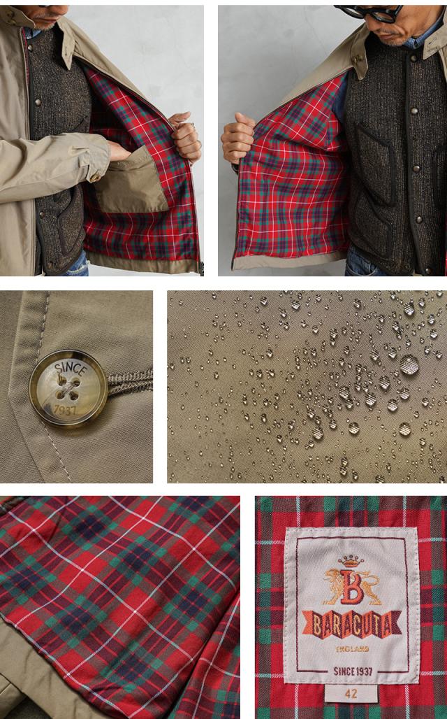 BARACUTAの英国陸軍の支給用ジャンパーをベースにした名品ゴルフ用ジャケット「G9」を、よりリラックスした着心地を実現した「G4」ブルゾンのアップデートモデルが登場。撥水性に優れた表地、ラグランスリーブ、スタンドカラー、アンブレラバックヨーク、そしてバラクータの特徴であるフレイザータータンの裏地など、クラシックなG9オリジナルの特徴は継承しつつ、ウエストと袖口のリブ部分は、調節可能なボタンストラップに置き換えられ、ストンと落ちるシルエットで着まわしやすく、よりソフトなフィット感で着心地をさらに向上しています