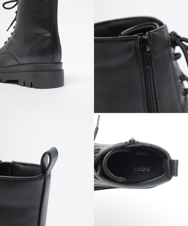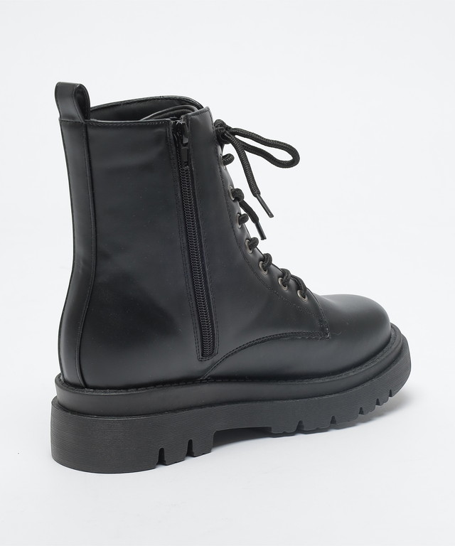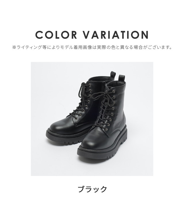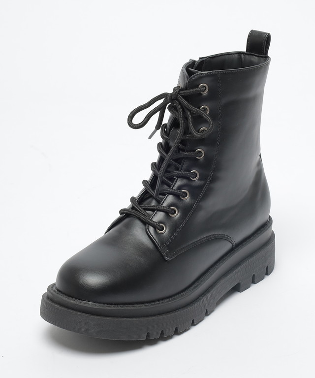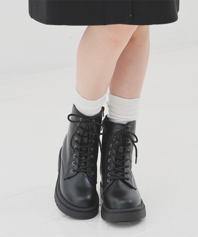 ブーツ 靴 シューズ ショートブーツ 厚底 レースアップ 合皮 ファスナー開閉 無地 ガーリー 冬 黒 レディース Honeys ハニーズ 厚底レースアップブーツ