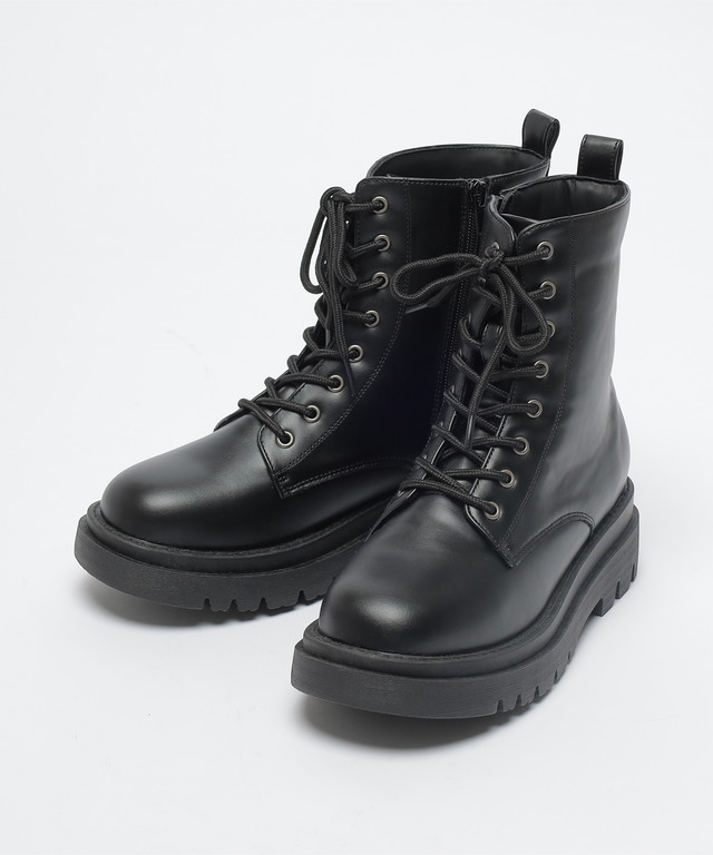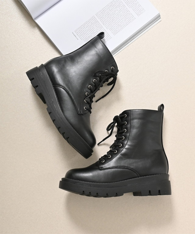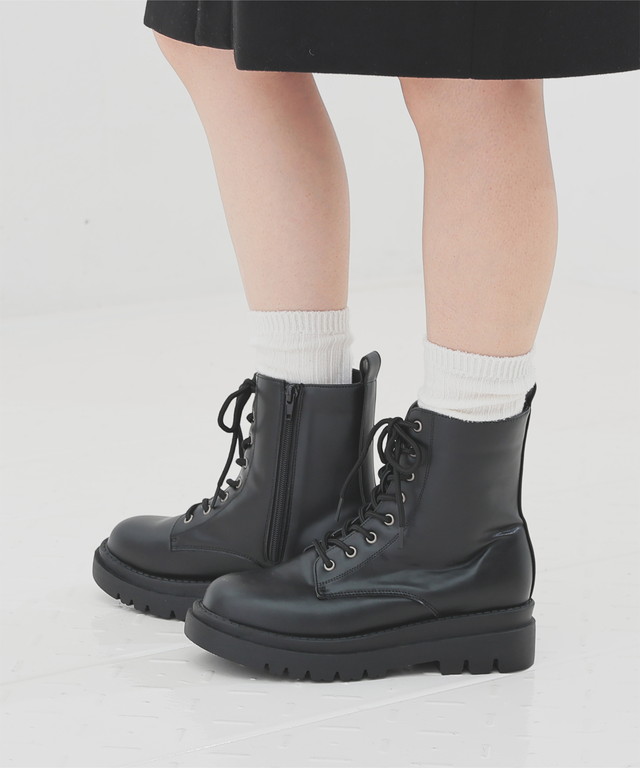 メンズライクなゴツめフォルムの編み上げデザイン。