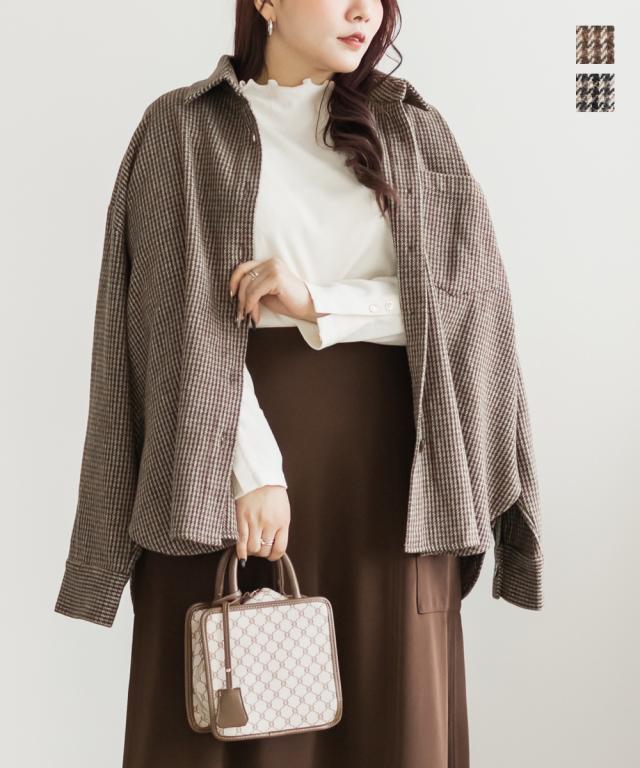 | 3Lサイズを着用しました。ぴったりのサイズ感でした。あたたかみのあるチェック柄と少し起毛がかった生地は秋冬にぴったりです!トップスとしても羽織としても着回しできるのも嬉しいポイントです◎長めの着丈で、腰回りもカバーしてくれます! |