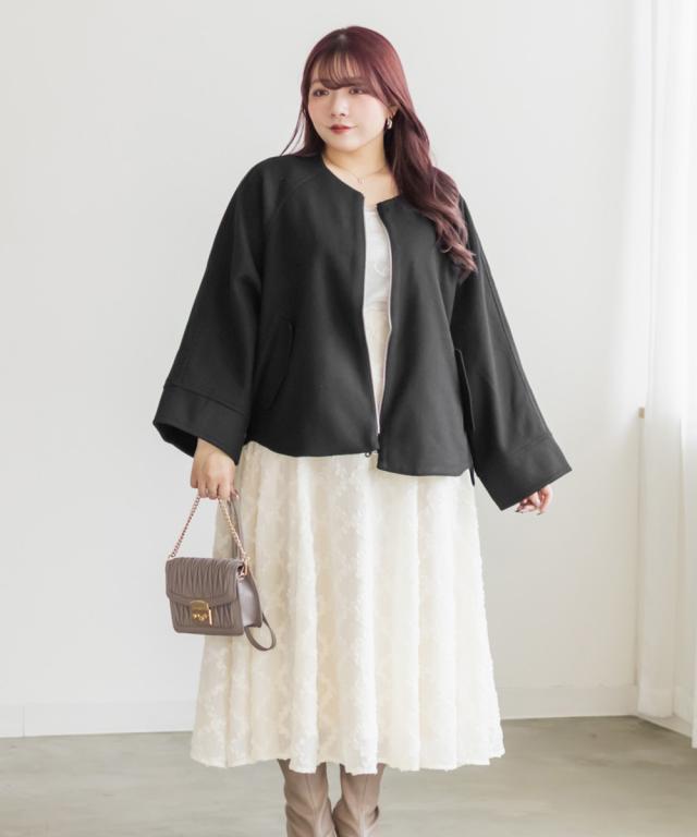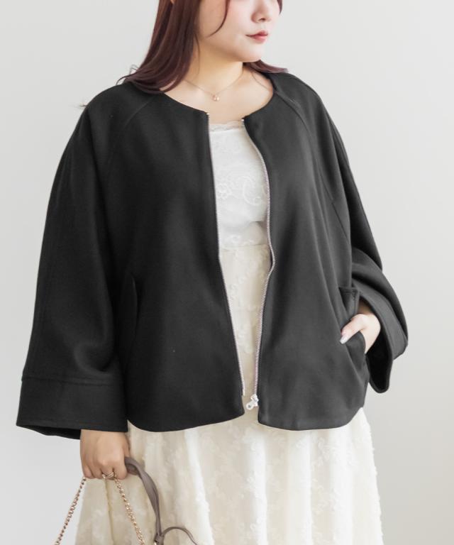 大きいサイズ/レディース/3L/4L/5L/フェイクウールドルマンスリーブコート