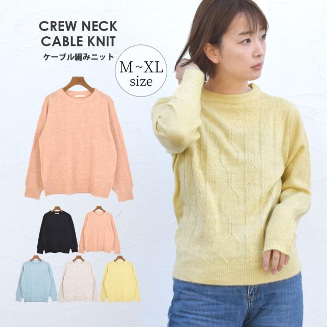 【ケーブルニット レディース セーター ニット きれいめ 秋冬 ケーブル編み 長袖 トップス クルーネック 首つまり プルオーバー ざっくり ウール混 暖か お洒落 かわいい 上品 丸首 オフィスカジュアル カラーニット ニットソー 黒 ブラック ピンク オレンジ サーモンピンク ブルー 水色 ベージュ イエロー 黄色】