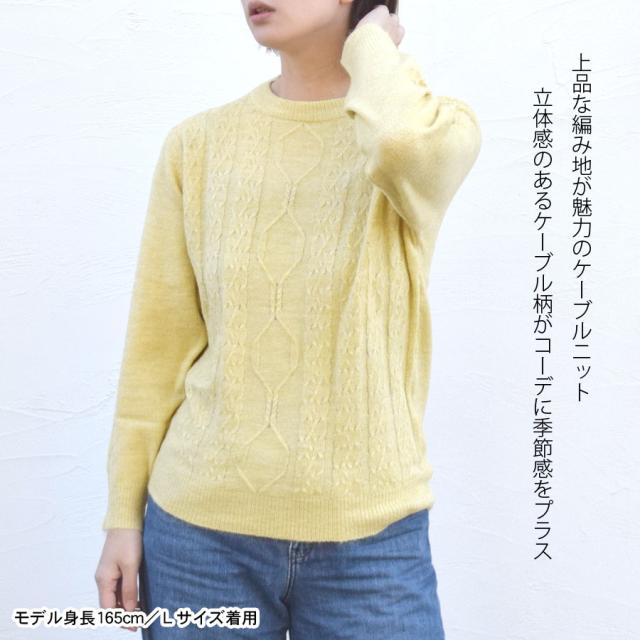 ケーブルニット レディース セーター ニット きれいめ 秋冬 ケーブル編み 長袖 トップス クルーネック 首つまり プルオーバー ざっくり ウール混 暖か お洒落 かわいい 上品 丸首 オフィスカジュアル カラーニット (bdg522)