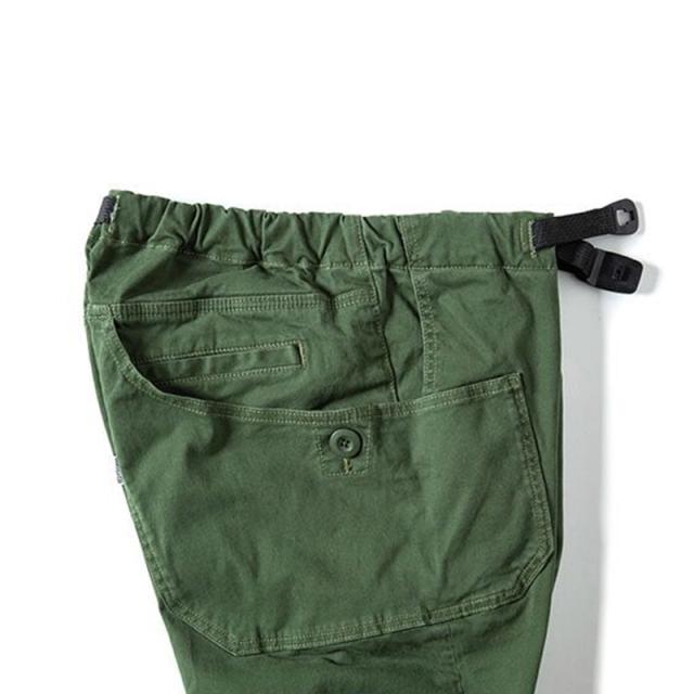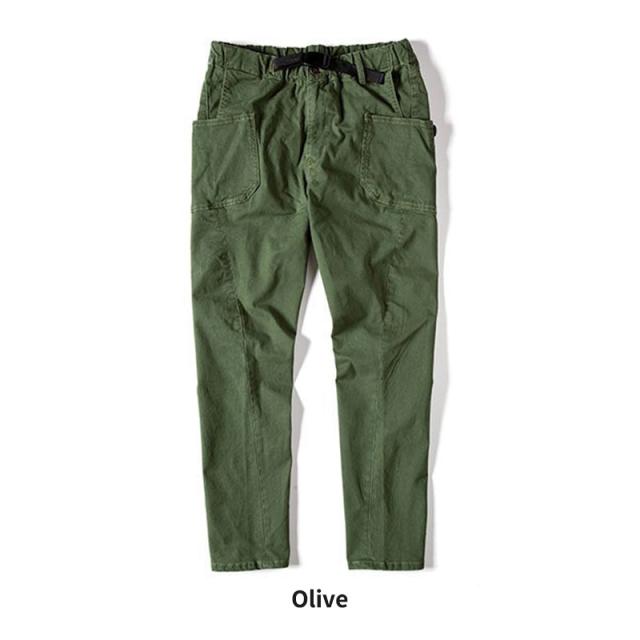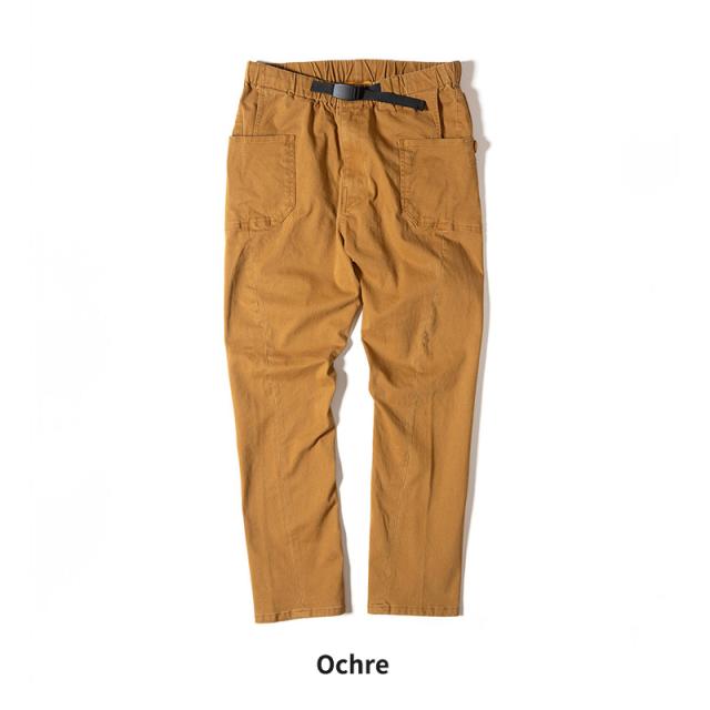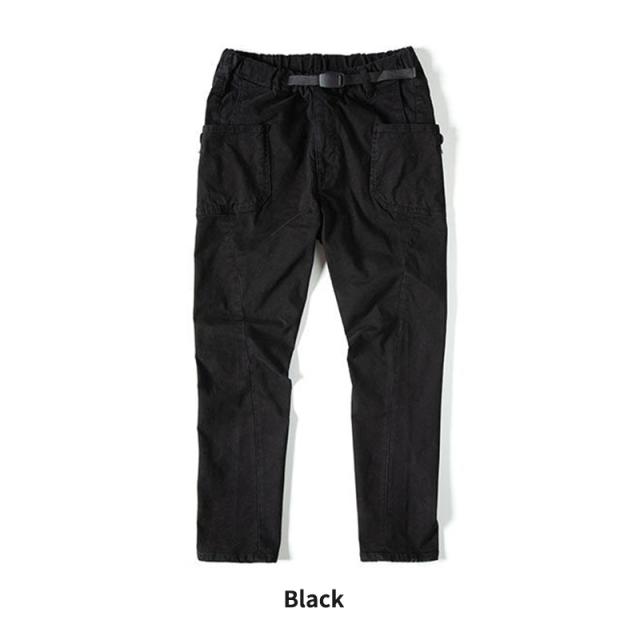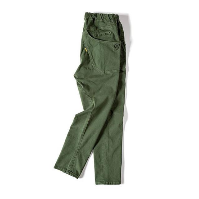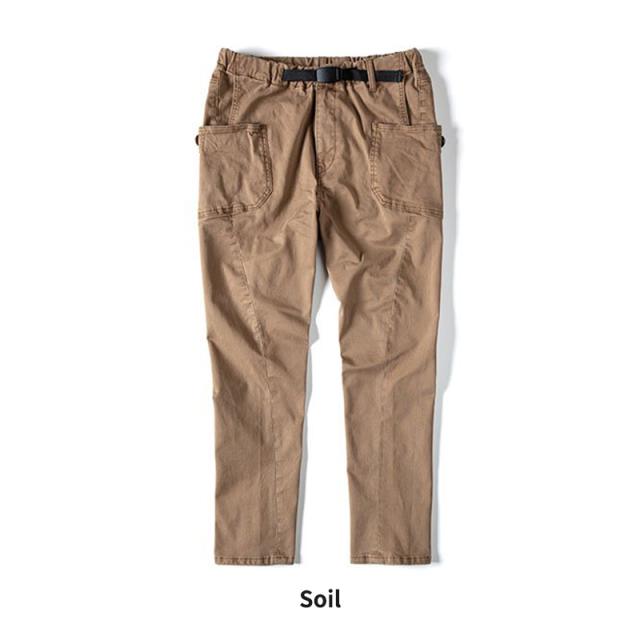 計算された独自のシルエットは、ワークパンツ特有の武骨さを持ちながらも、都会的な印象を併せ持ちます。 キャンプサイトでの設営から、街中でのリラックスしたスタイルまで、あらゆるシーンに溶け込む汎用性の高さが魅力。