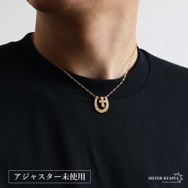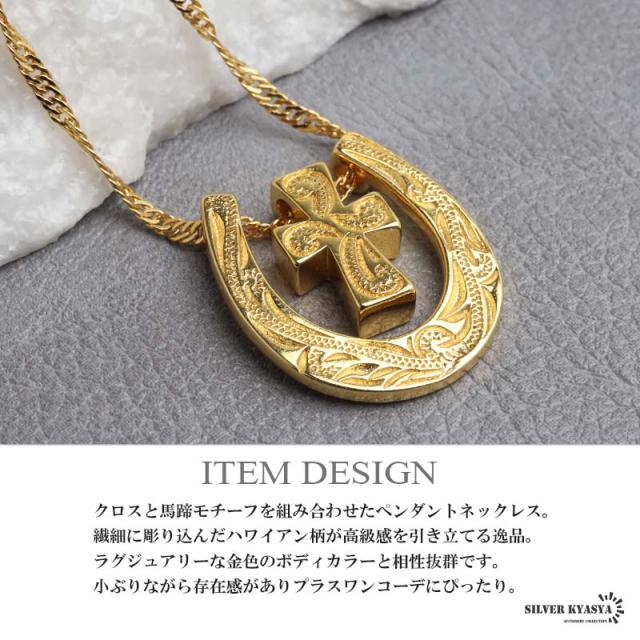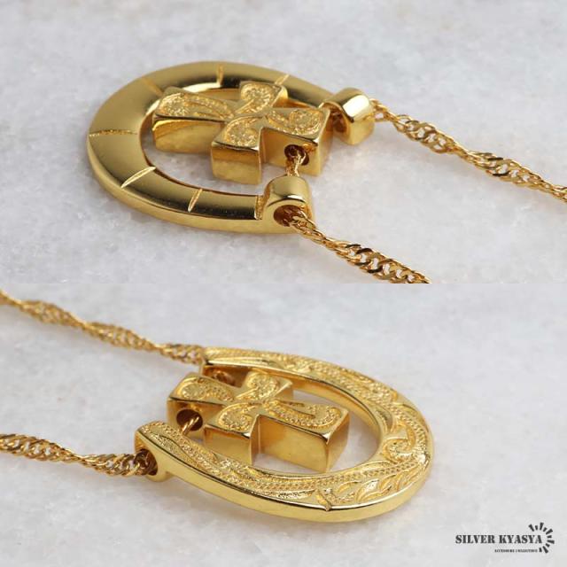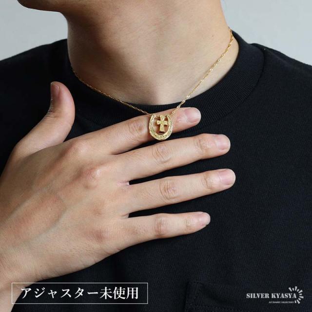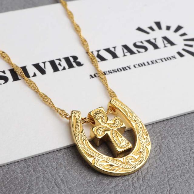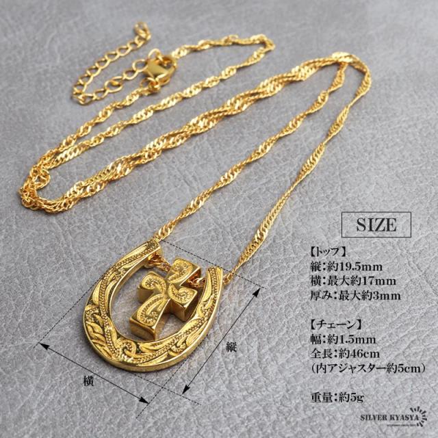 馬蹄クロスネックレス ハワイアンネックレス ペンダントネックレス ゴールドネックレス スクリューチェーン 細身 小ぶり キラキラ ラグジュアリー 高級感 ショート 男女兼用 レディース