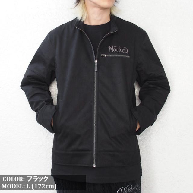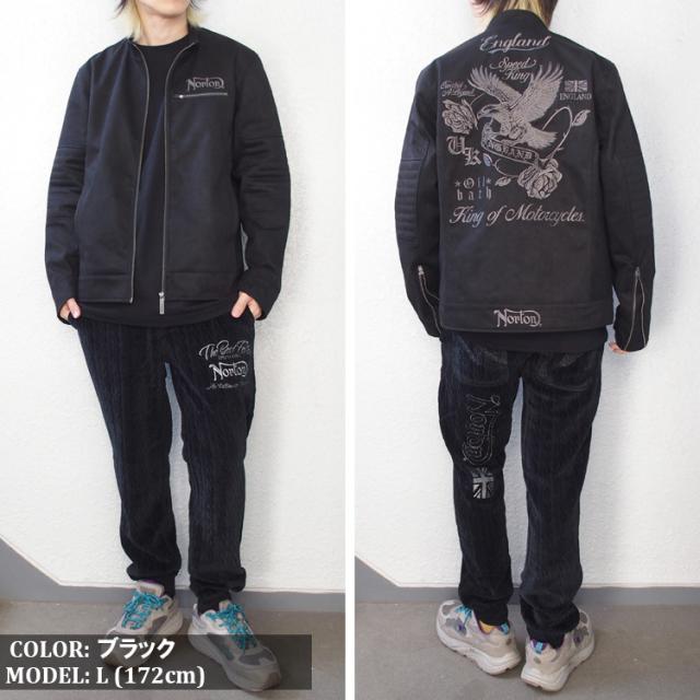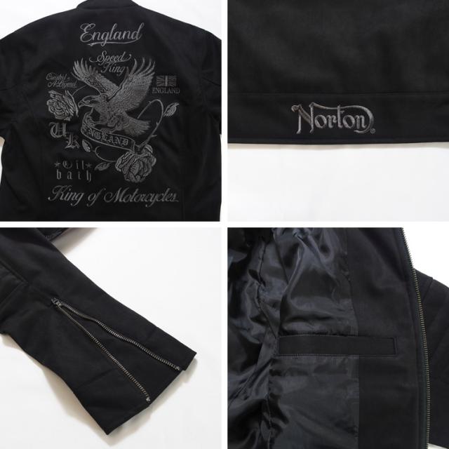 ・イーグルやローズなど、Nortonの世界観をギュッと詰め込んだデザイン。 存在感がありながらもボディと同色刺繍でデザインされているので、大人っぽく仕上げました。 肘部分にはステッチを施すことで、Nortonならではのバイカーらしさも感じられます。