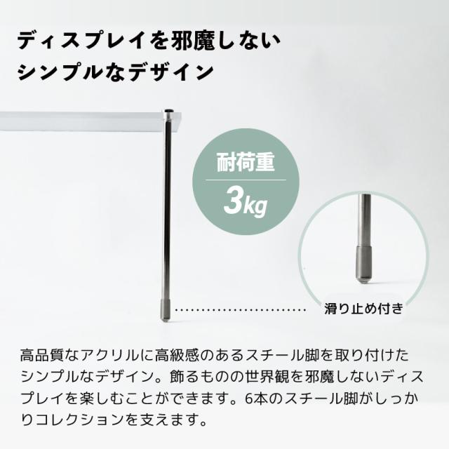 ディスプレイ スタンド 幅66cm 高さ15cm 奥行8cm フィギュア 棚 アクリル 透明 アクスタ ひな壇 フィギュア棚 展示台 雛壇 収納 卓上 ミニチュア ミニフィギュア ガチャガチャ カプセルトイ ラバスト アクキー 飾る 並べる 推し活
