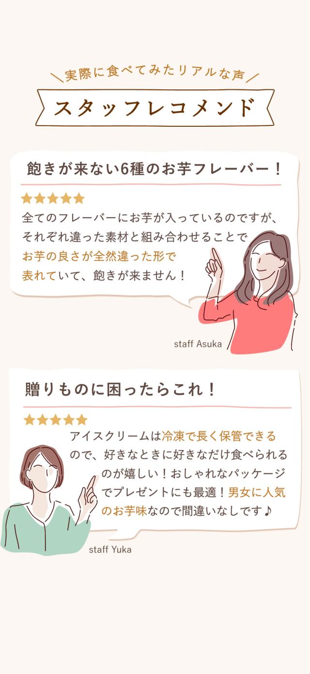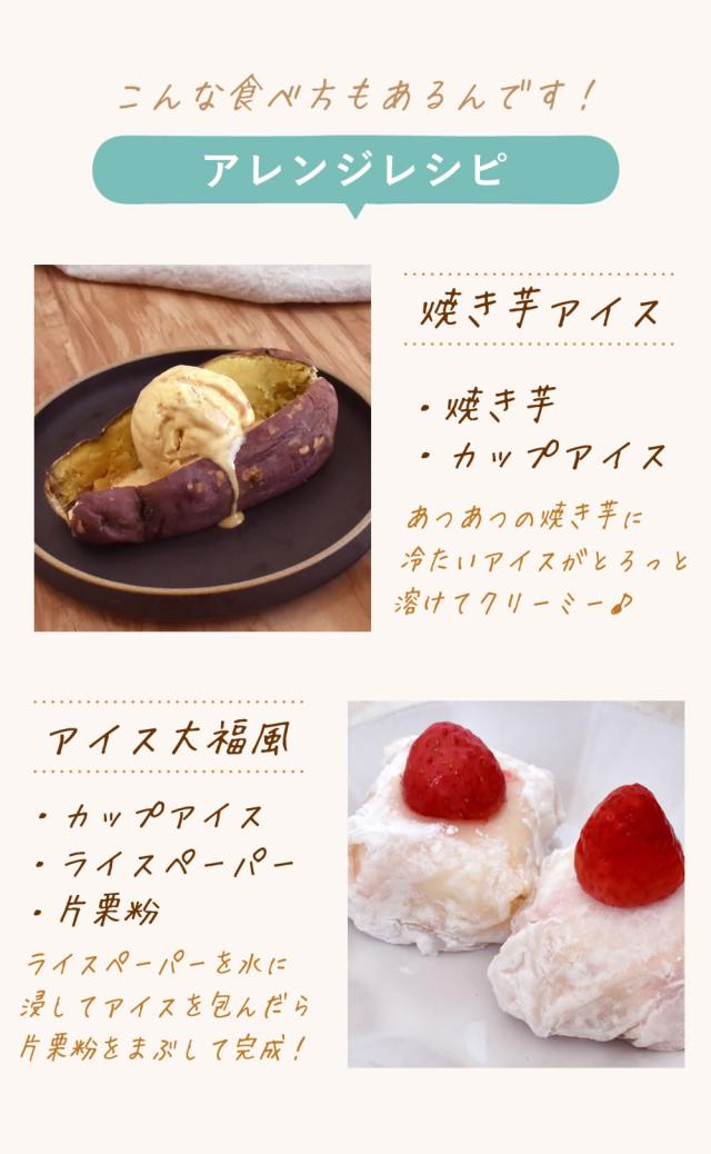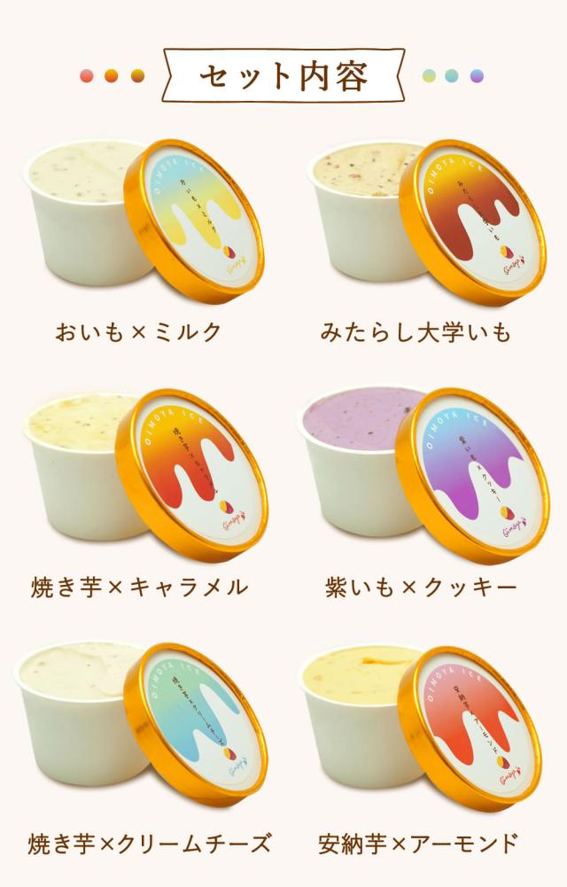 ■おいもミルク 牛乳(国内製造)、乳製品、さつま芋、砂糖/安定剤(増粘多糖類)、乳化剤(一部に乳成分含む) ■焼き芋キャラメル 牛乳(国内製造)、乳製品、さつま芋、砂糖、キャラメルシロップ/安定剤(増粘多糖類)、乳化剤(一部に乳成分含む) ■焼き芋クリームチーズ 牛乳(国内製造)、乳製品、さつま芋、砂糖、フルーツミックス/安定剤(増粘多糖類)、乳化剤(一部に乳成分・オレンジ・小麦含む) ■みたらし大学芋 牛乳(国内製造)、乳製品、さつま芋、砂糖、みたらしソース、黒ごま/安定剤(増粘多糖類)、乳化剤(一部に乳成分・小麦・大豆含む) ■紫いもクッキー 牛乳(国内製造)、乳製品、紫芋、砂糖、チョコクッキー/安定剤(増粘多糖類)、乳化剤(一部に乳成分・小麦・大豆含む) ■安納芋アーモンド 牛乳(国内製造)、乳製品、安納芋、砂糖、アーモンド/安定剤(増粘多糖類)、乳化剤(一部に乳成分・アーモンド含む) |