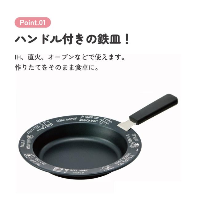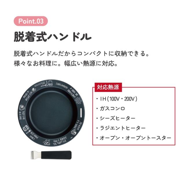 ハンドル付き 鉄皿 26cm フライパン IH対応 直火 オーブン ガス 鉄板 鉄鍋 丸型 鉄製 耐熱プレート 取っ手が取れる グリル皿 ハンバーグ ステーキ キャンプ アウトドア 取っ手 外せる キッチン 用品 グッズ 調理器具 プーさん KIPH2