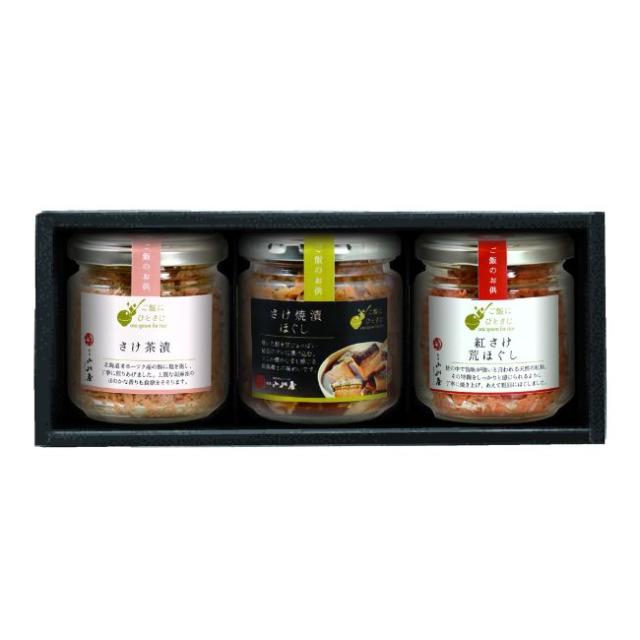 さけ茶漬100g、紅さけ荒ほぐし100g、さけ焼漬ほぐし150g