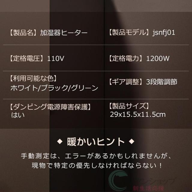 PTCセラミックを使用しているセラミックファンヒーターは、高電熱転換率UP!ボタンを押すだけで、1秒速暖で、足元からぽかぽか!このセラミックヒーターは、加湿機能も備わっています。適量の水を水槽に注ぐだけで、霧が出ます。ヒーターが一日中熱風を吹いても、加湿機能によって一切の乾燥を感じることはありません。