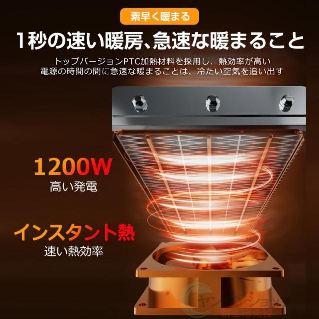 このセラミックファンヒーターは送風(6W/1h約0.16円)、温風(800W/1h約18.9円)、強温風(1200W/1h約32.4円)三つの温度モードを切り替えることができます。省エネのセラミックファンヒーターで、普通な暖房器具より電気代は少なくとも30%節約!冬にはファンヒーターとして、夏には扇風機として使えます。冷暖兼用で、年中に大活躍!PTCセラミックを使用して、普通なヒーターより、高電熱転換率35%UP!可動範囲が広く、10畳の部屋全体を急速に暖めます。