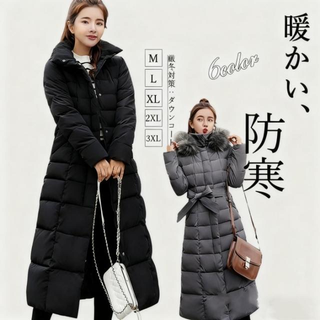 ダウンコート ダウンジャケット コート レディース 冬 ロング丈 アウター 中綿 前開き 厚手 暖かい 防寒 撥水 通勤 おしゃれ