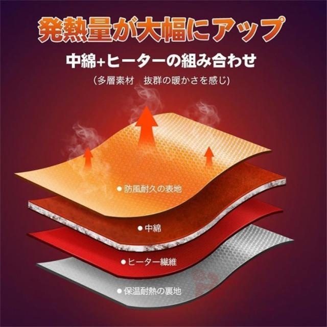 - ジャケット自体が断熱性が高く、軽くてとてもいいです。 電熱ヒーターが発熱すると、優しくとても暖かい。温度が三段階調節できて、色でわかるのでリーズナブルで使いやすい。 購入してとてもよかったです。友人知...