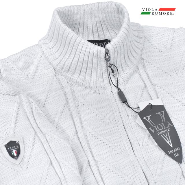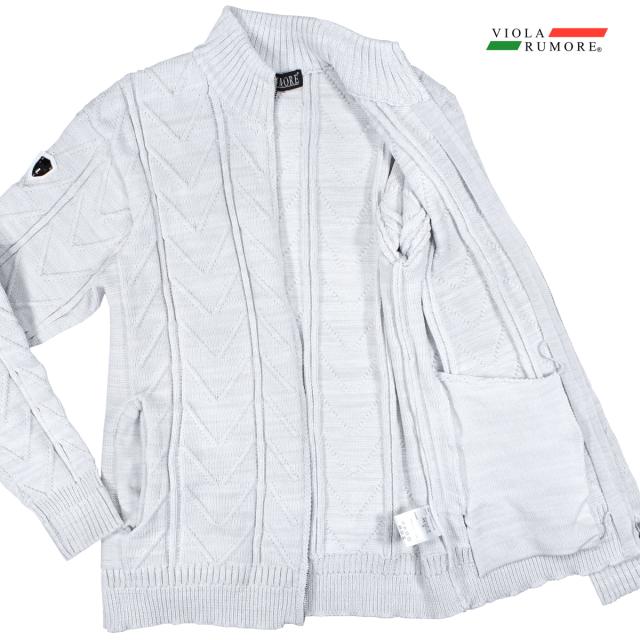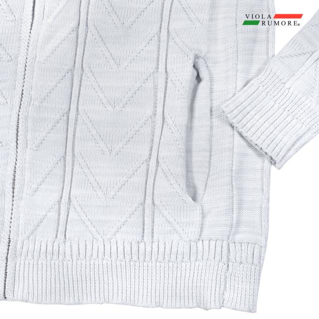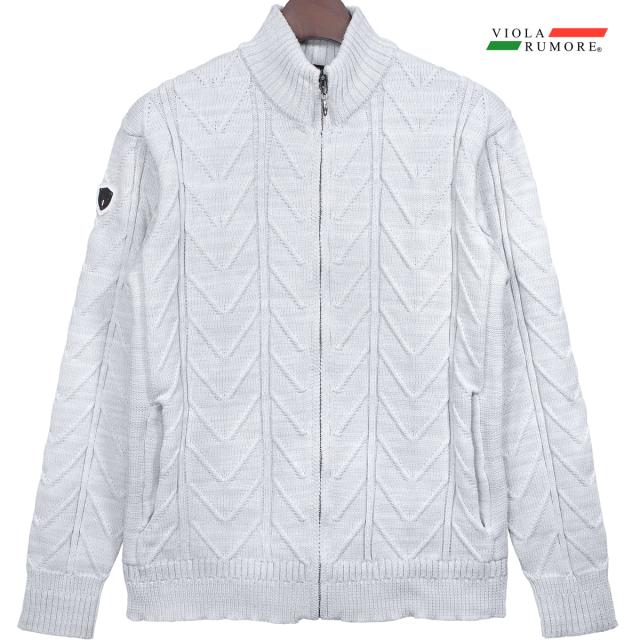 VIOLA rumore ヴィオラ ビオラ ニット フルジップアップ ケーブル編み メンズ ライトアウター ニットジャケット mens(ホワイト白) 62128