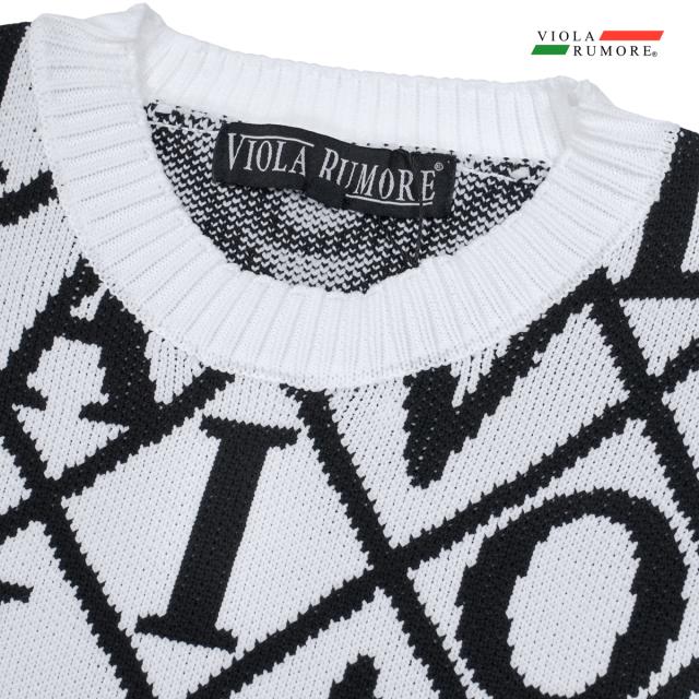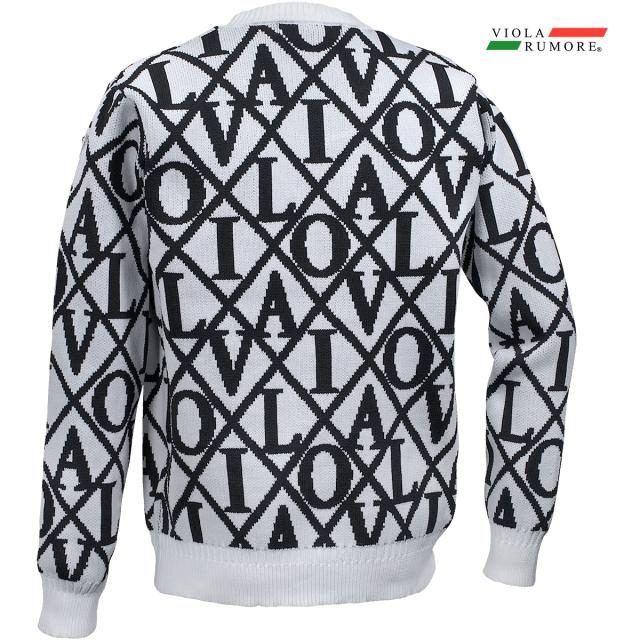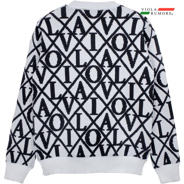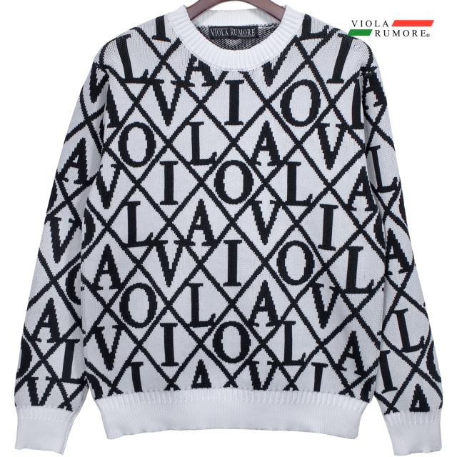 VIOLA rumore ヴィオラ ビオラ ニット セーター クルーネック ロゴ ダイヤ柄 メンズ mens(ホワイト白) 62125