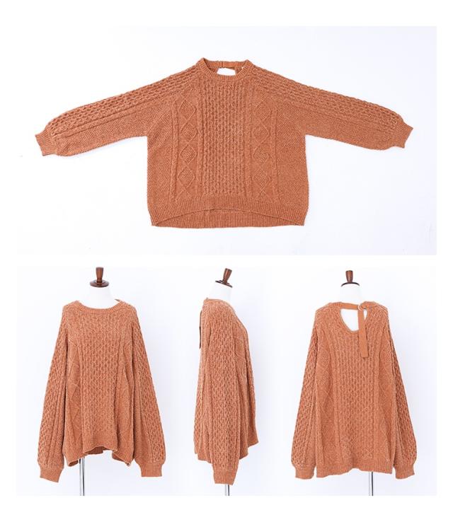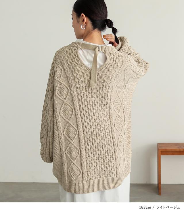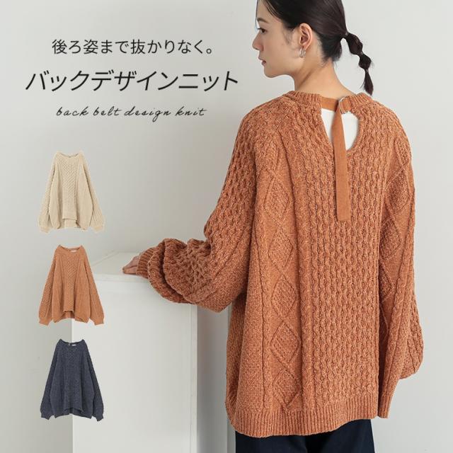 <冬新作>『後ろベルト柄編みニットトップス』【メール便不可】【40】[ニット レディース トップス 長袖ニット ニットトップス モールニット 後ろ開き ベルトデザイン 秋 冬 オシャレウォーカー]【メール便不可】【40】