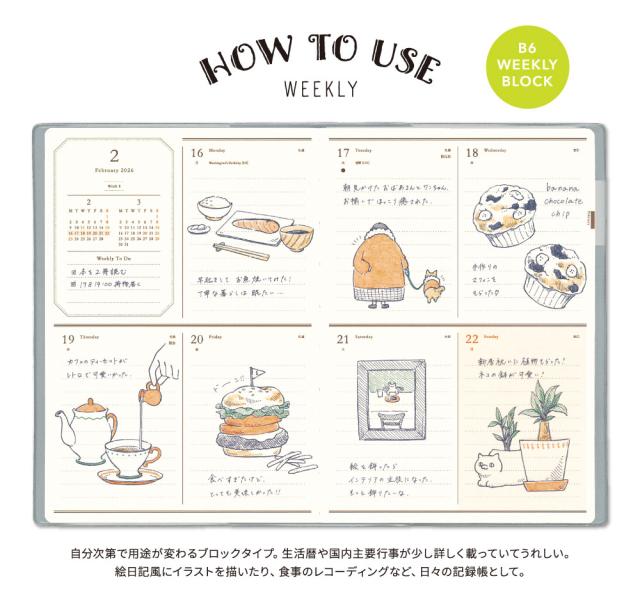 手帳 2026 マトカ 2026年1月始まり ダイアリー スケジュール帳|B6サイズ ウィークリー・ブロック式(週間ブロック・日記帳)『ユニゾン|UNISON』ポケット付き バイカラー 大人かわいい おしゃれ