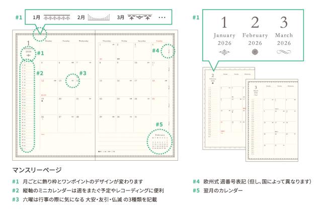大人女子好みのデザインが充実している『MATOKA』の 2026年1月始まりマンスリーダイアリー。