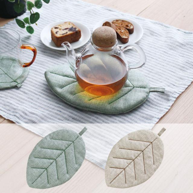 ティーポットやグラタン皿などの下に敷く、葉っぱの形をしたポットマット。