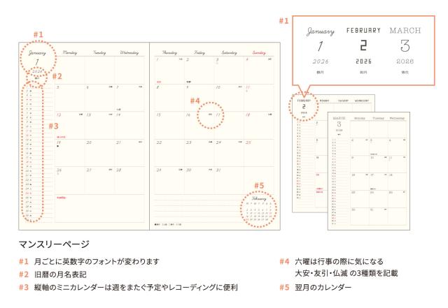 大人女子好みのデザインが充実している『MATOKA』の 2026年1月始まりマンスリーダイアリー。