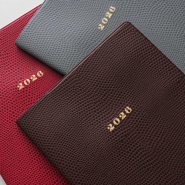 リザード調の高級感のある生地で年号だけが箔押しされた、シンプルイズベストな表紙です。