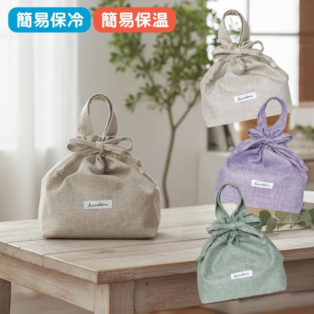LINDEN リンデン 保冷ランチ巾着袋|おしゃれ かわいい ランチ お弁当 巾着袋 シンプル 行楽 遠足 ランチバッグ ピクニックハイキング お弁当袋 子供 保冷 巾着 ベージュ パープル グリーン|LEAFLETS
