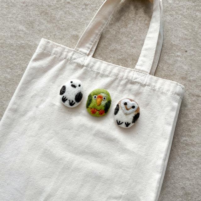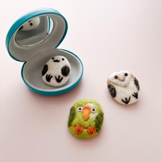 洋服の襟元やバッグ、帽子などにつけると、ちょっとしたアクセントになり、鳥たちの可愛らしさが楽しめます。