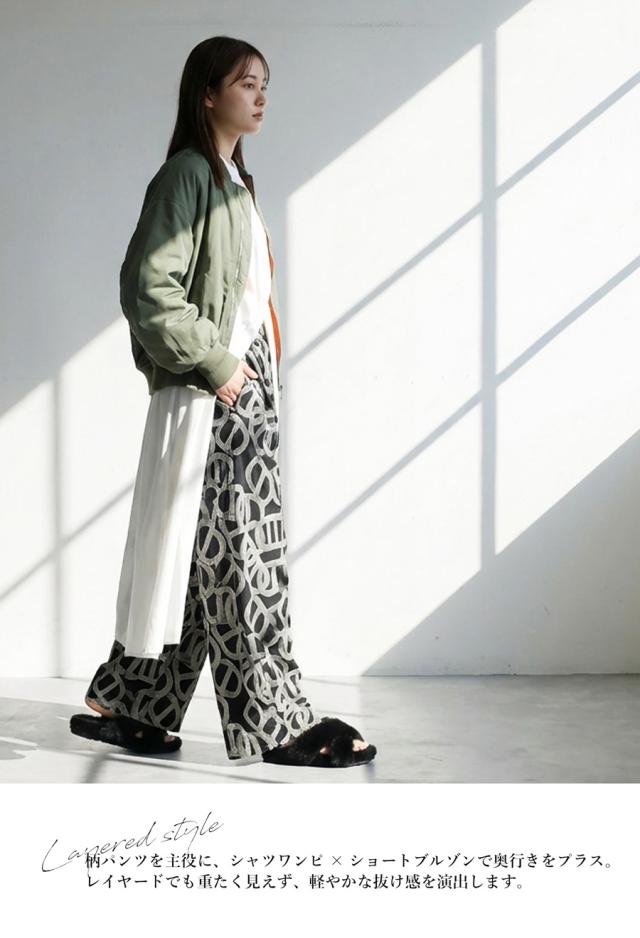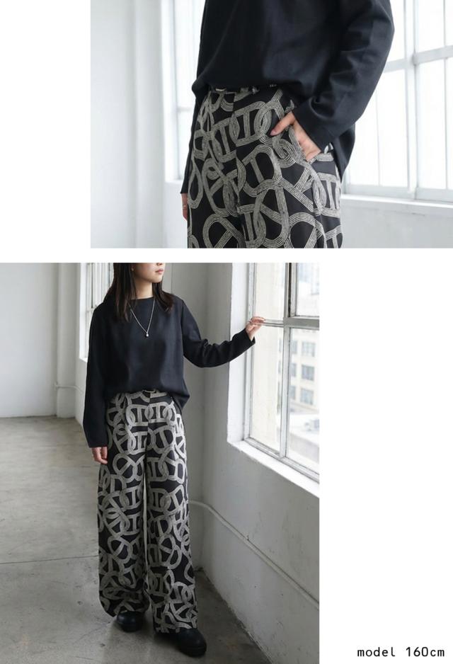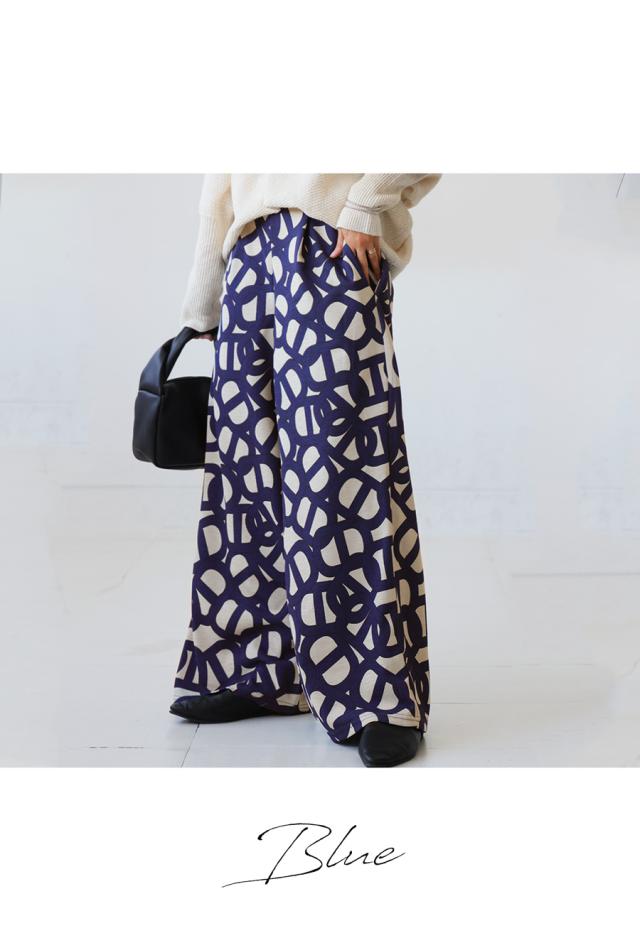幾何学柄 ワイドパンツ レディース ボトムス パンツ 送料無料・再入荷 (100)メール便可 冬新作