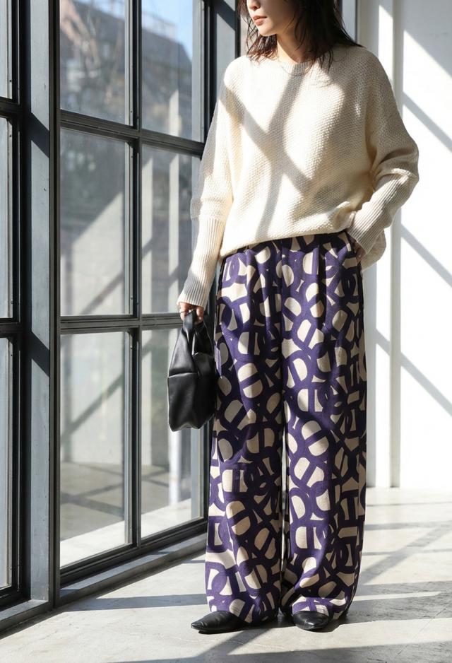 大胆な幾何学柄が目を惹くワイドパンツが登場しました。
