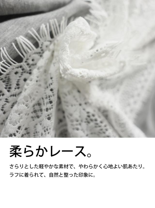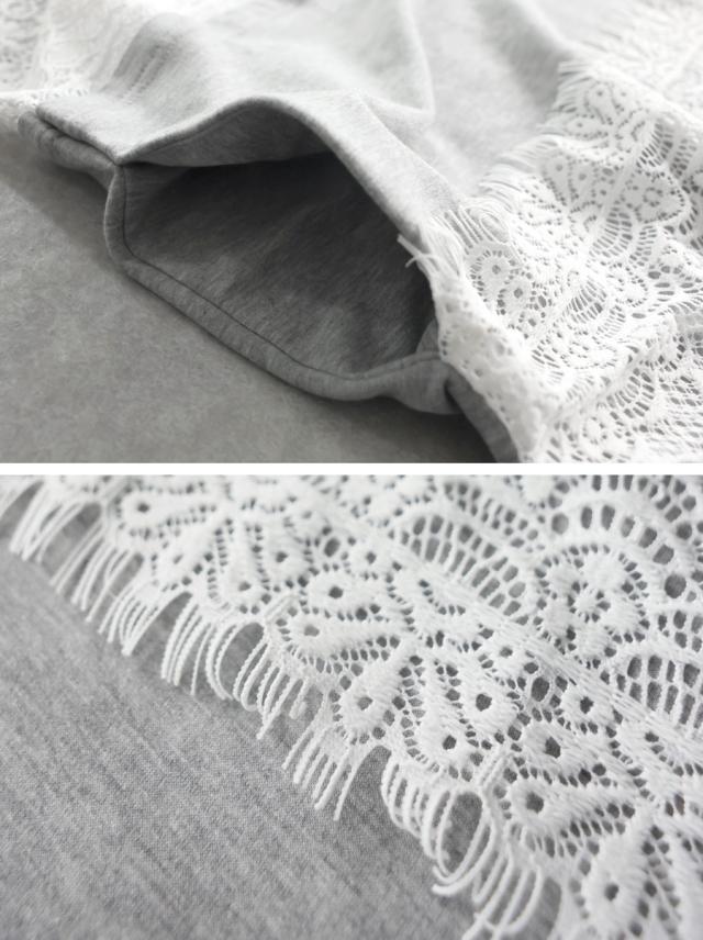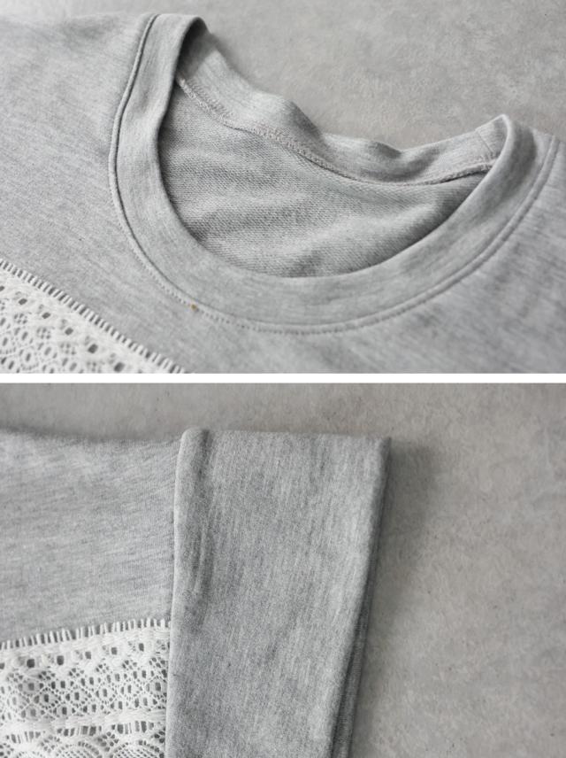 レース(レース素材)を切替で施すことで、カジュアルなミニ裏毛に程よい上品さと高見え感をプラス。