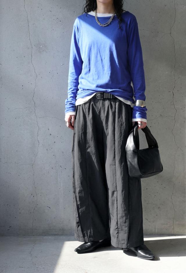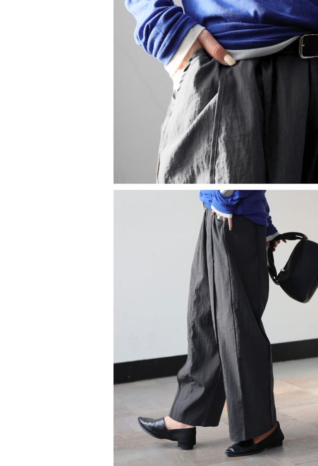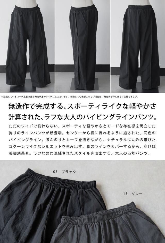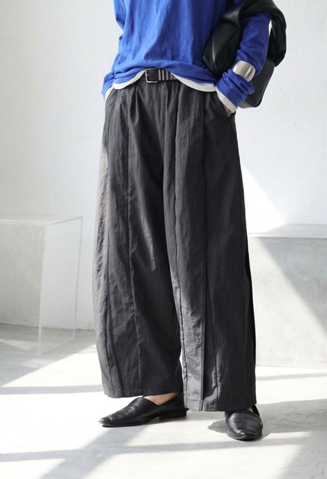 ラフさと上品さを兼ね備えた、モード感漂うパイピングワイドパンツ(イージーパンツ)が登場しました。
