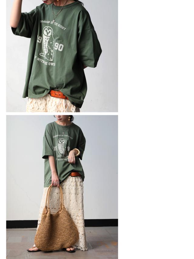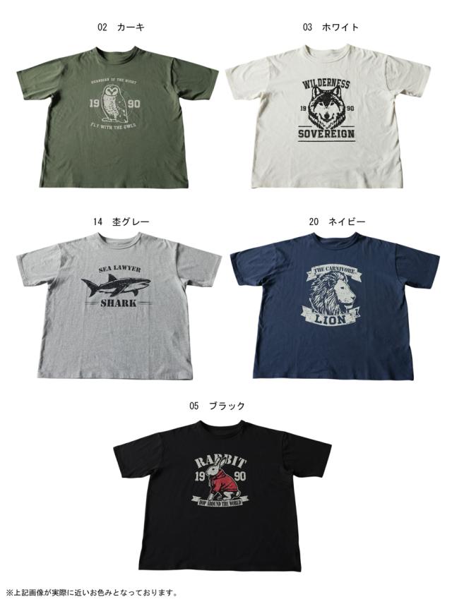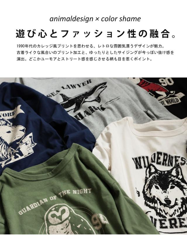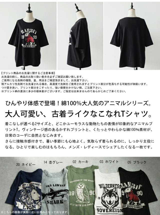 za-00294 トップス 半袖Tシャツ カットソー 動物 プリント ユニセックス コットン オーバーサイズ ドロップショルダー クルーネック 古着ライク カジュアル 体型カバー 大きいサイズ